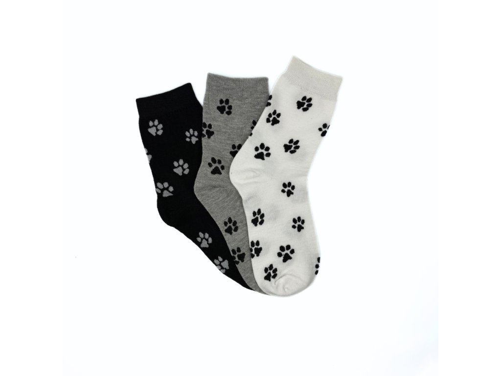 Dlouhé ponožky ve 3 barevných variantách, které potěší každého milovníka psů. Tlapkový motiv je decentní a neutrální barevné kombinace umožňují snadné ladění s oblečením. Delší střih navíc lépe hřeje a hodí se jak do zimních bot, tak k domácímu nošení.