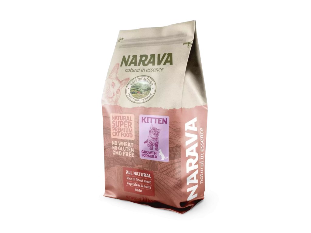 Narava Kuře pro koťata a březí kočky jsou prémiové granule navržené speciálně pro období intenzivního růstu a zvýšené potřeby živin. Obsahují 71 % masa, jater a tuků, které poskytují dostatek energie a podporují správný vývoj svalů a tkání.