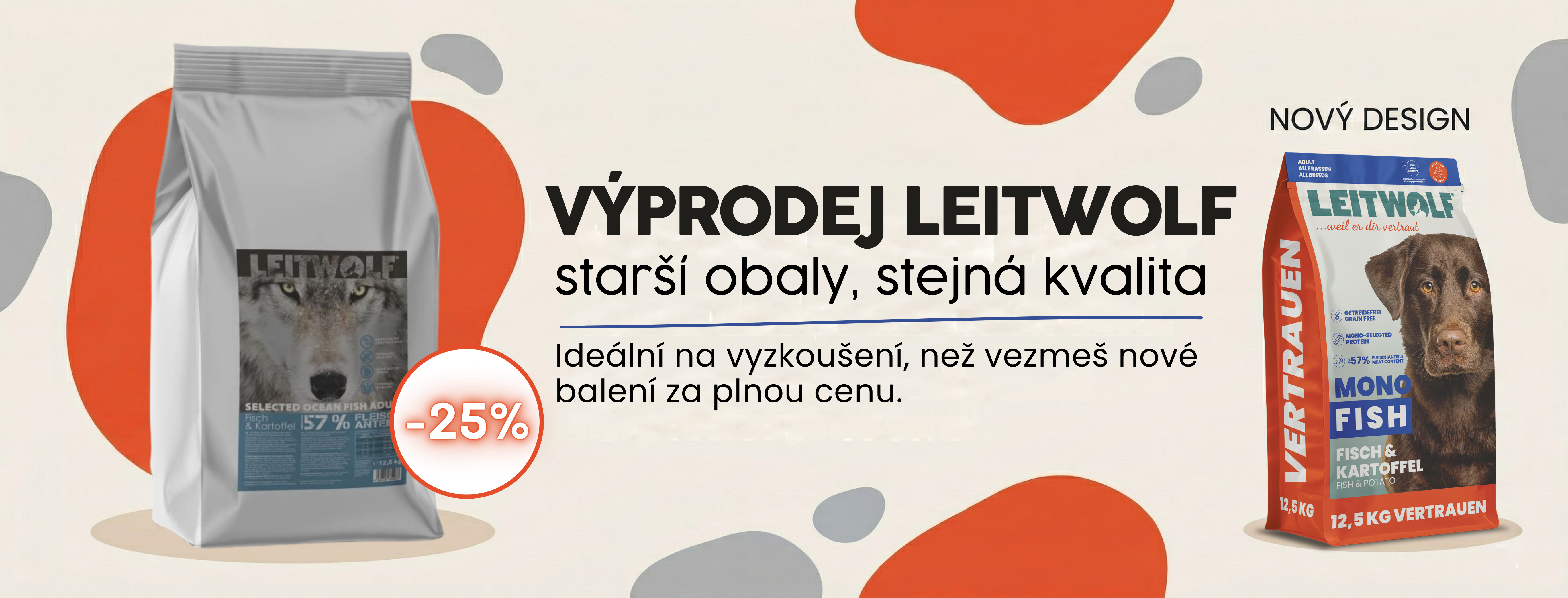 Vítejte ve výprodejové sekci LEITWOLF! Tyto produkty jsou součástí doprodejové nabídky kvůli změně designu obalů – obsah je stejně kvalitní jako vždy. Využijte výrazné slevy -25% a dopřejte svému psovi prémiové granule LEITWOLF za skvělé ceny!