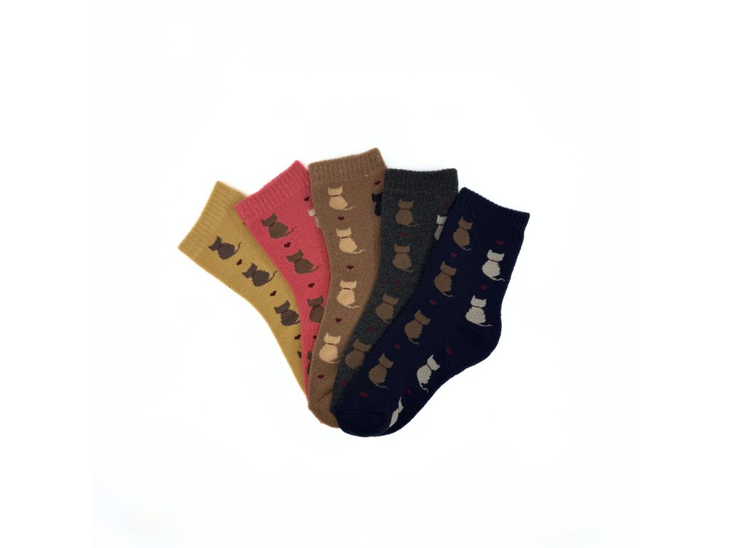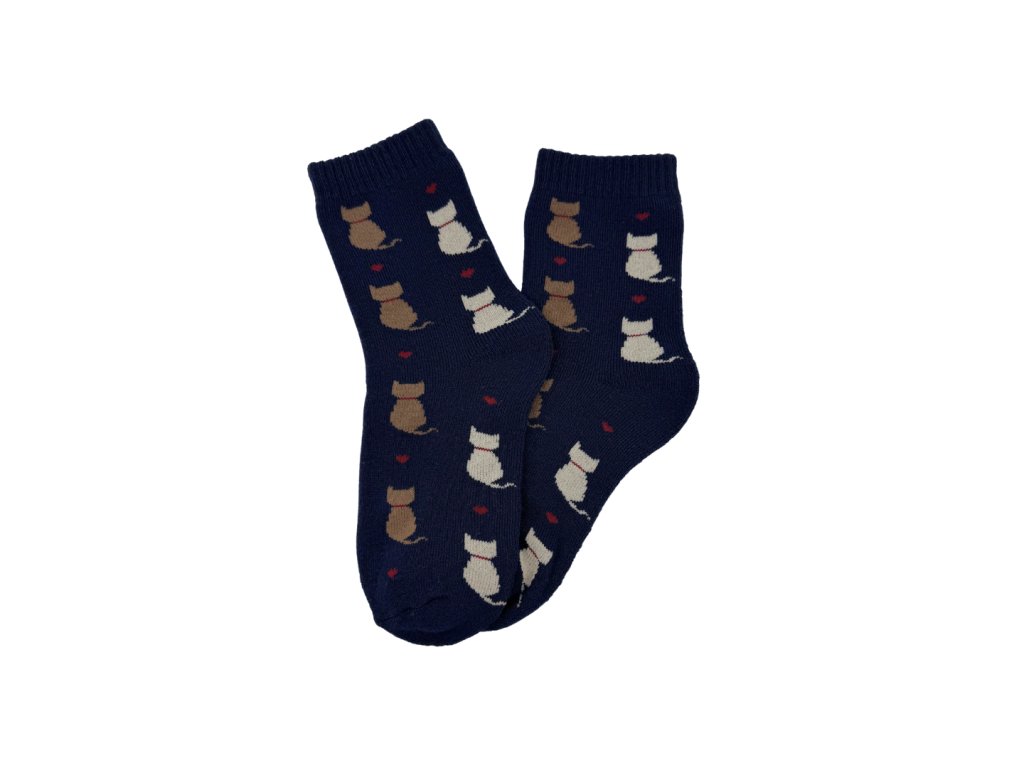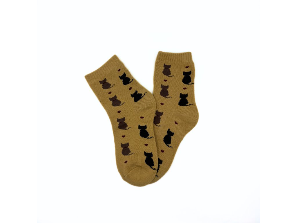 - hravé ponožky se vzorem sedících koček a srdíček